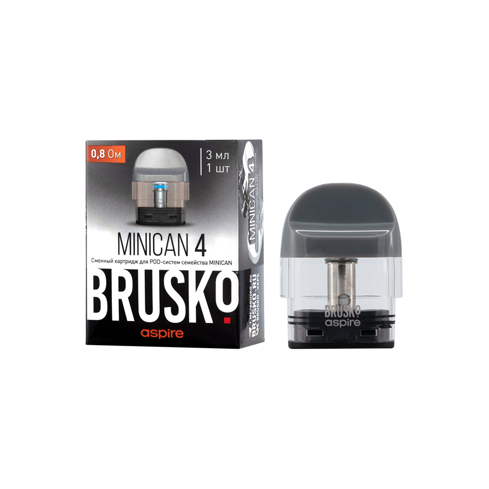 На складе Код товара: Сменный картридж Brusko Minican 4, 0.8 Ом (3мл) Черный Сменный картридж Brusko Minican 4 - 3 мл (0.8 Ом) - Черный